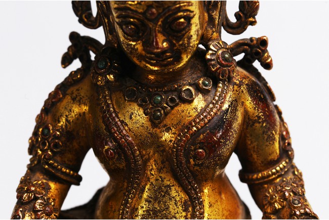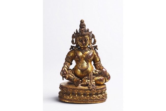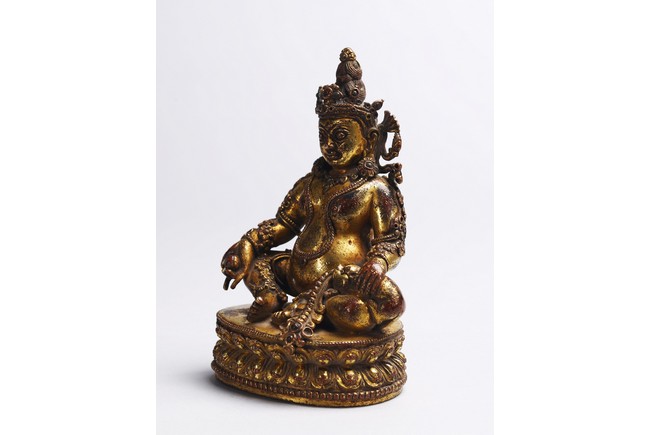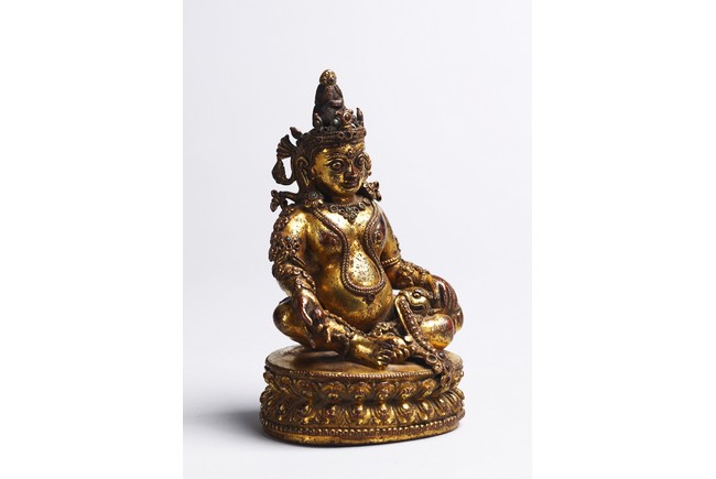 A Tibetan Gilt Copper Figure of Jambhala 十七世紀 或更早 鎏金銅財神坐像