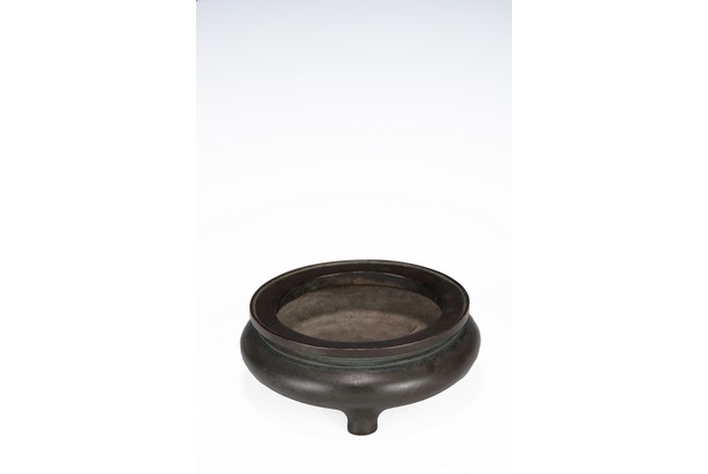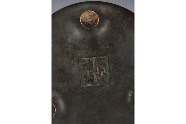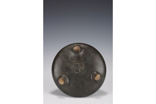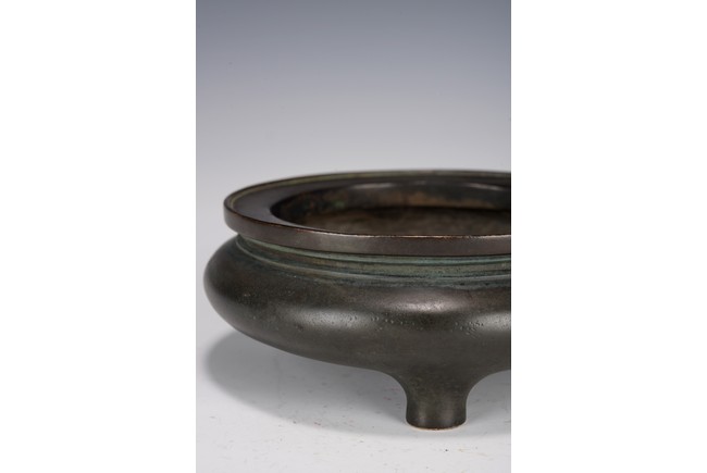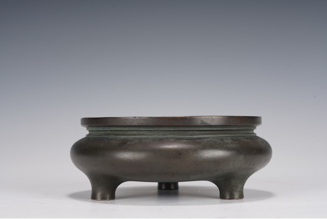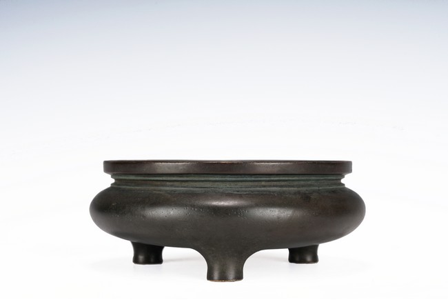The squat body below a rigid neck and mouth rim, the base with a four-character mark. Qing Dynasty period.