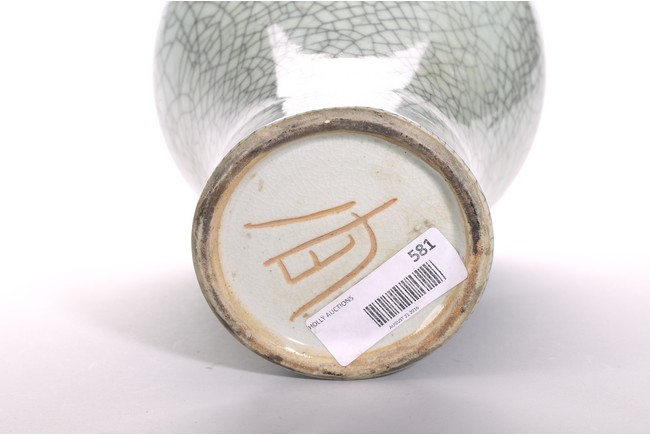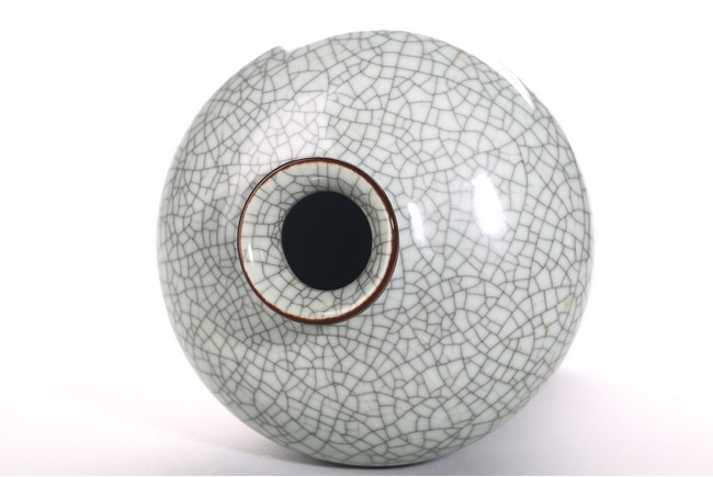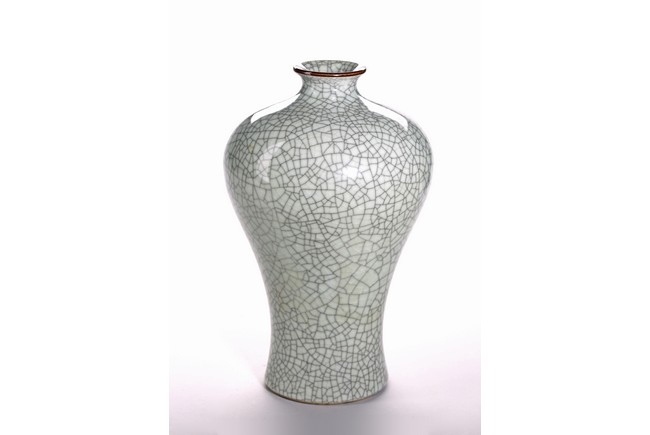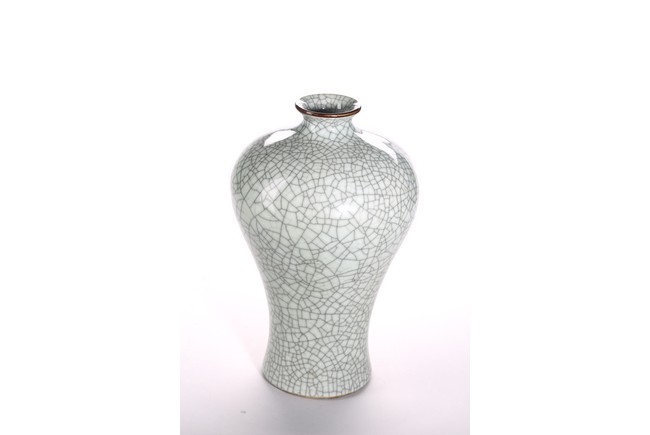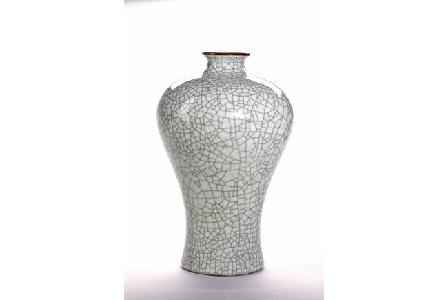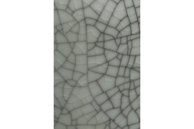 The body tapering from high rounded shoulder to the gently spreading foot, covered on the exterior with crackle patterns over white glaze.