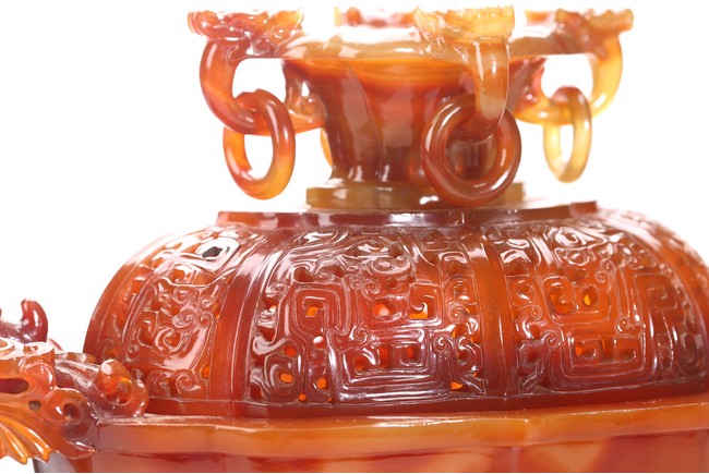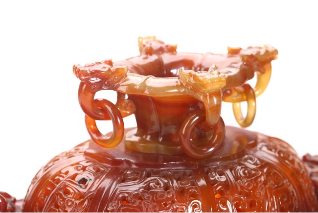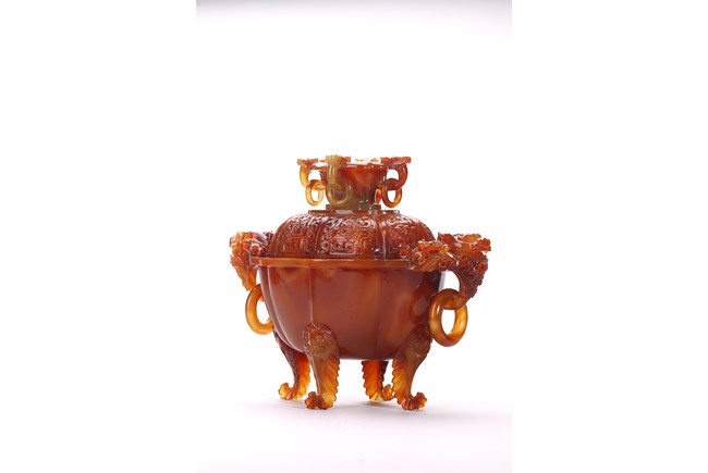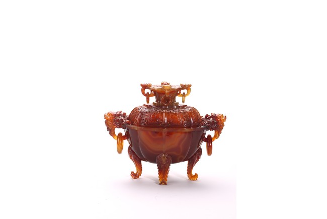 The lobed form tripod censer supported on three mughal style feet, the body flanked by pair of mythical beast heads suspended with loose rings, the reticulated cover surmounted with a flared finial decorated with four small mythical beast handles suspended with rings.