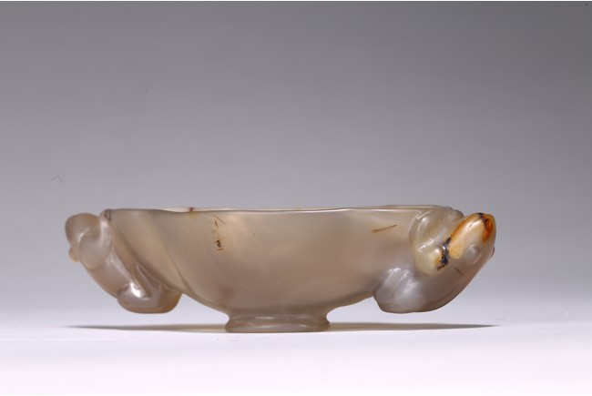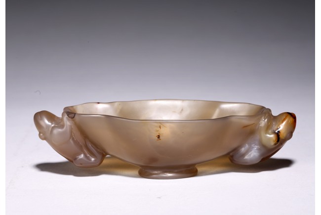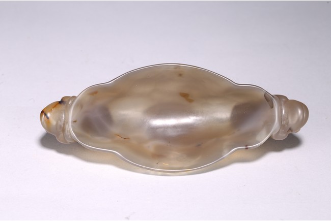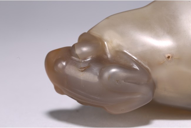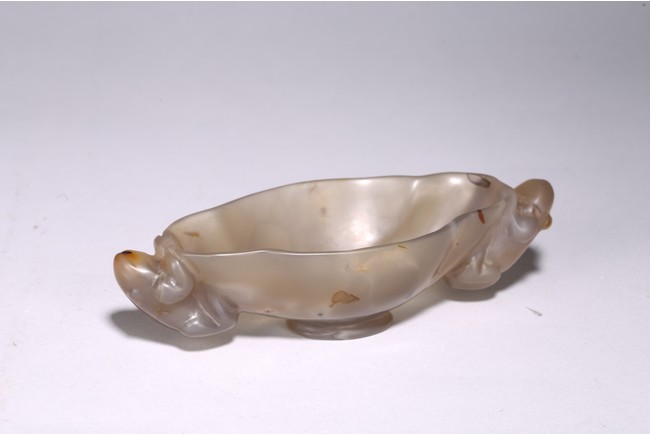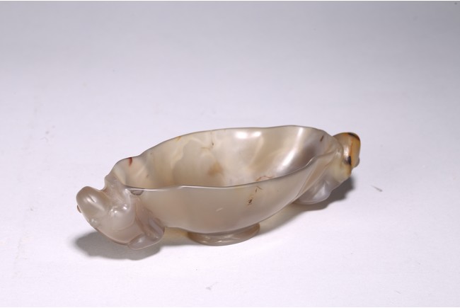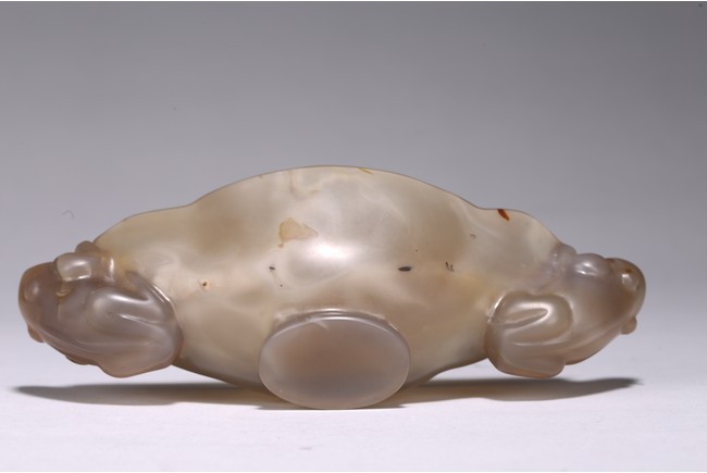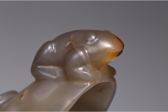 The lobed agate washer carved with a pair of frog form handles. Tang Dynasty period or later.