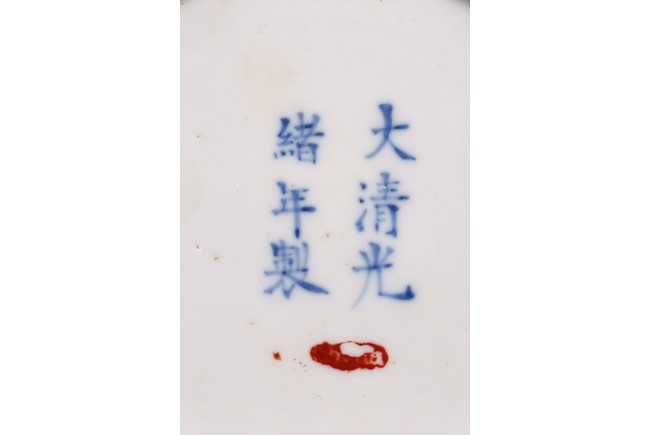 Chinese. Each painted with lotus blooms borne on stylised foliage, the base inscribed with six character Guangxu mark.