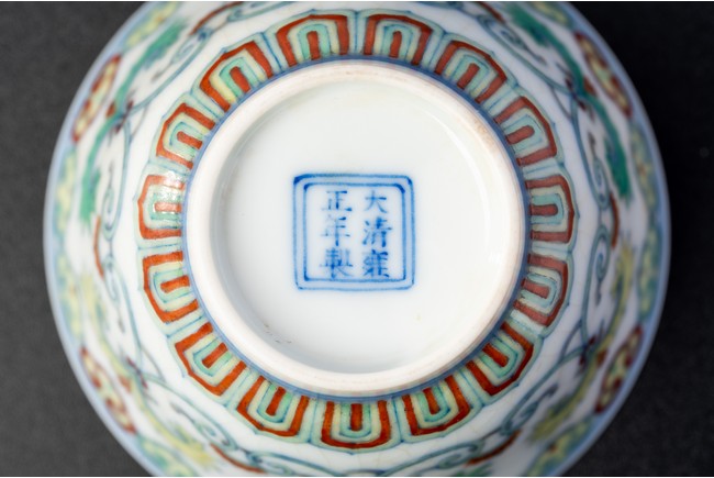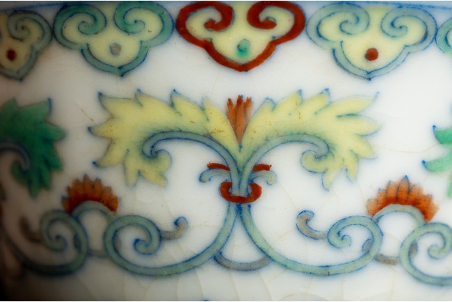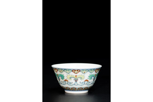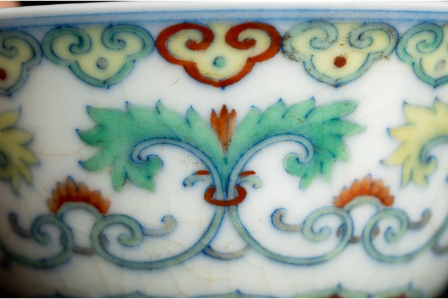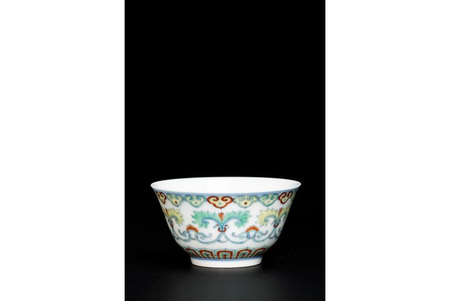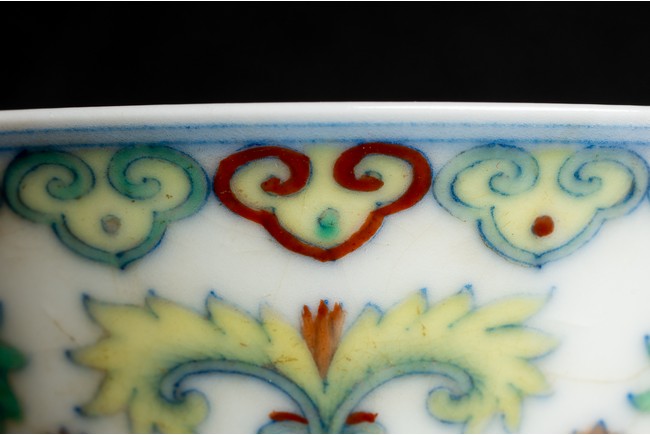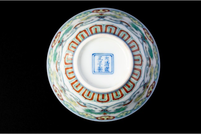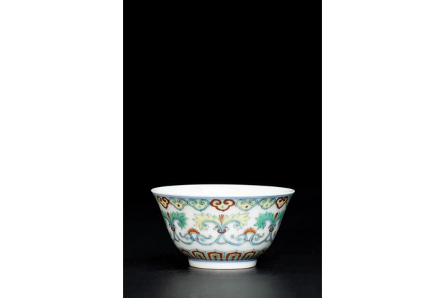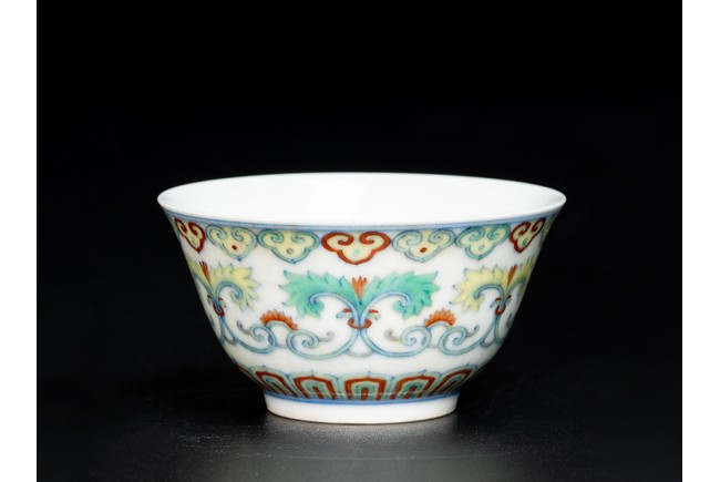 Decorated to the exterior with stylized floral scrolls in between ruyi head band and lappet band around the foot. The base inscribed with apocryphal reign mark.