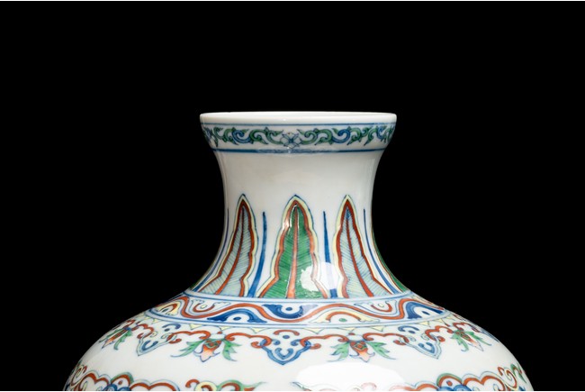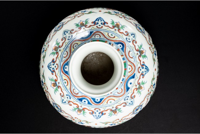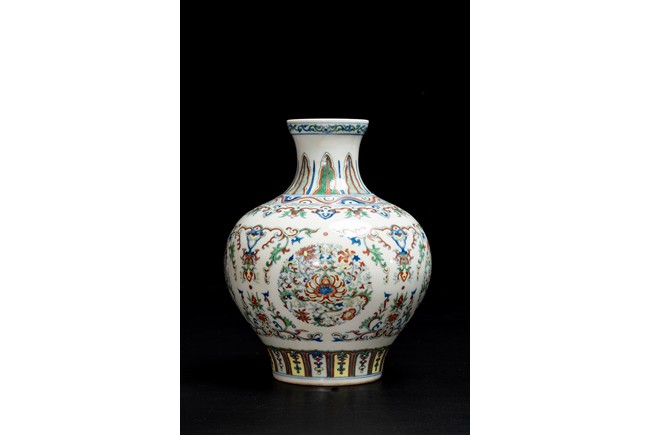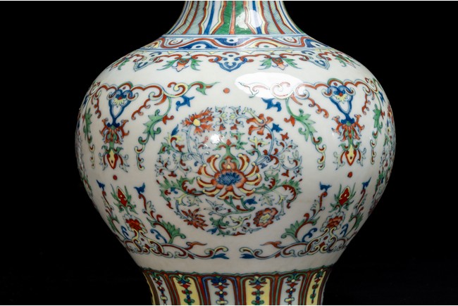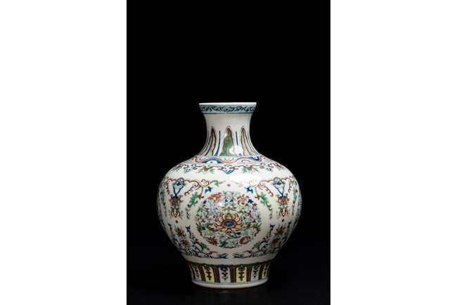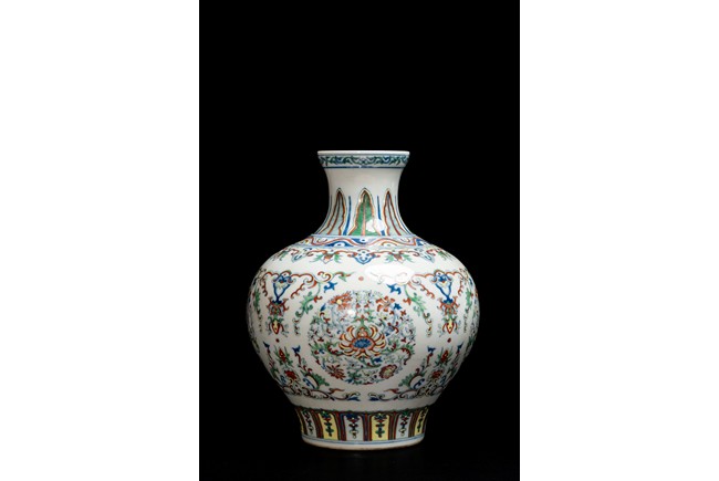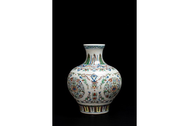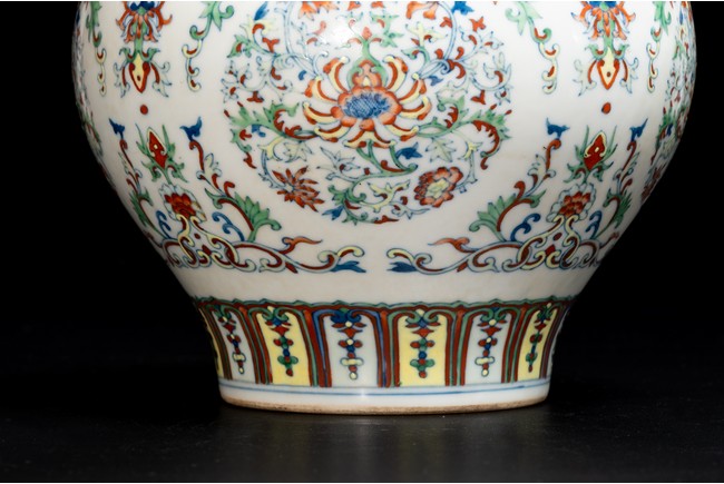 Decorated around the body with stylized floral scrolls. The base with apocryphal reign mark. Qing Dynasty period.
