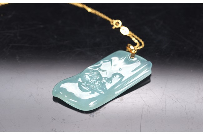 A NATURAL JADEITE 'LOTUS' PENDANT    天然翡翠荷花無事牌墜