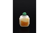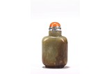 A RUSSET AND CELADON JADE SNUFF BOTTLE