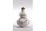 清十九世紀 陳國治刻 雕白瓷龍紋葫蘆型鼻煙壺