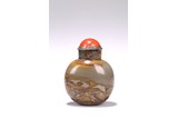 A WHITE JADE LANDSCAPE SNUFF BOTTLE WITH SKIN
