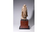 A CHINESE LIMESTONE CARVED 'GUANYIN' HEAD WITH STAND
