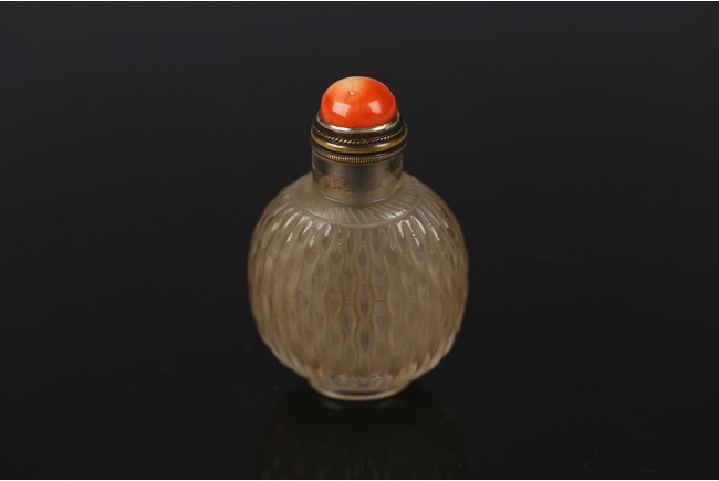 The bottle is well carved with an overall basket weave pattern. Qing Dynasty period.