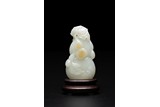 A CHINESE WHITE JADE CARVING OF DOUBLE GOURD