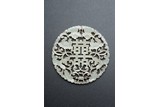 A WHITE JADE 'HAPPINESS' RETICULATED PLAQUE