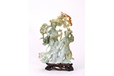 A TRICOLOR JADEITE FIGURAL GROUP CARVING