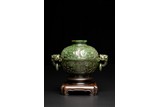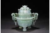 清乾隆 碧玉龍銜環耳饕餮紋爐