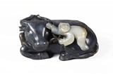 A BLACK AND WHITE JADE 'BOY ON BUFFALO' CARVING