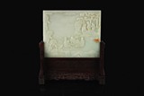 AN INSCRIBED WHITE JADE 'SCHOLARS GATHERING' TABLE SCREEN