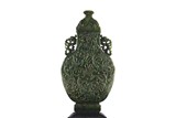 A LARGE GREEN JADE 'EIGHT EMBLEMS' VASE AND COVER