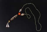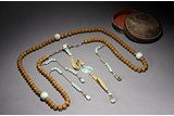 A CHINESE AGARWOOD AND JADEITE BEAD COURT NECKLACE