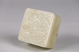 A WHITE JADE 'DRAGON' SQUARE BOX