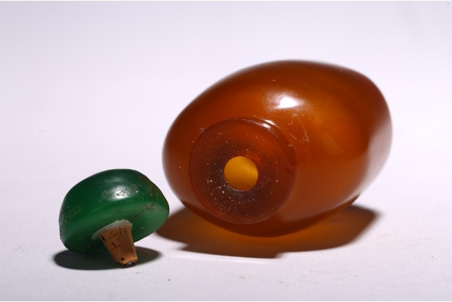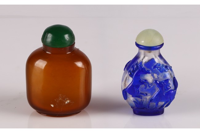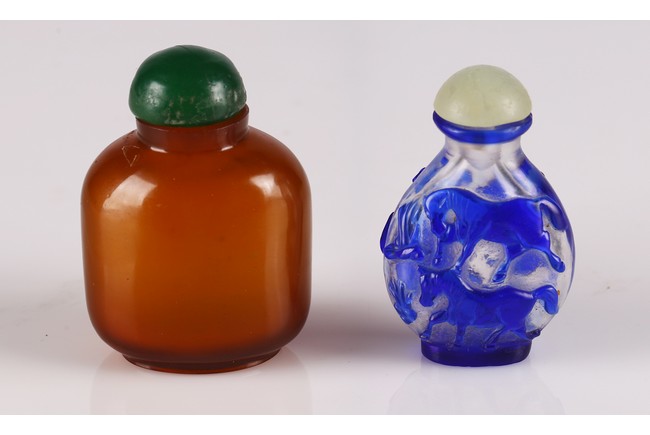 Comprising of an overlay glass snuff bottle and an agate snuff bottle. Republic period.