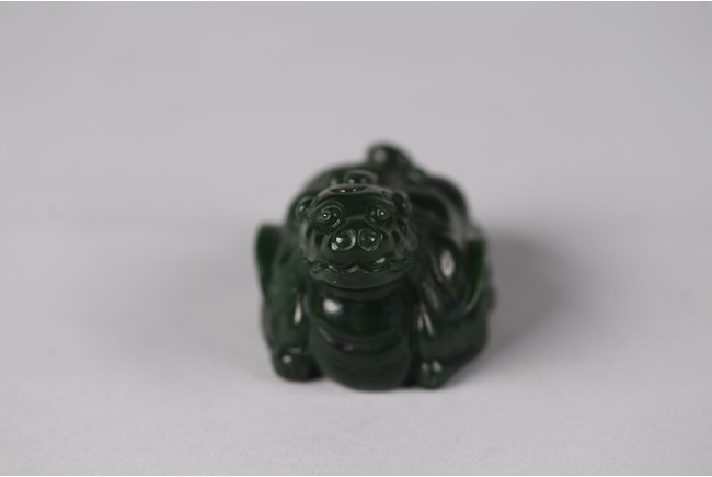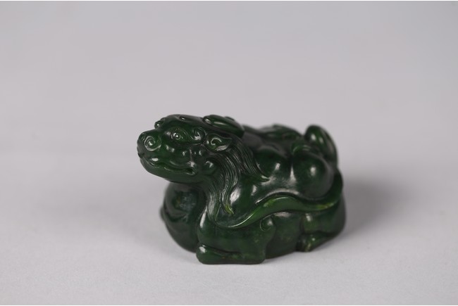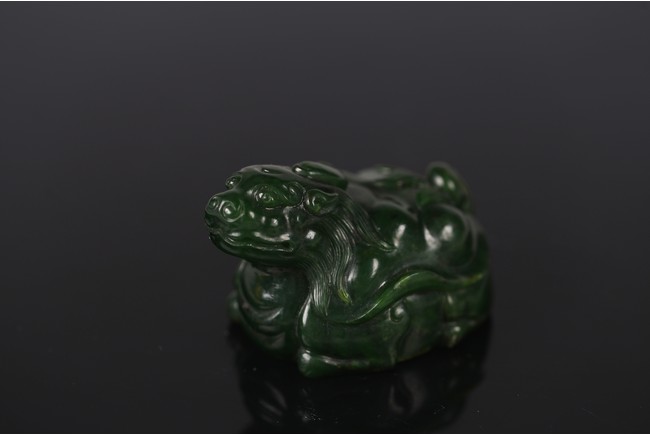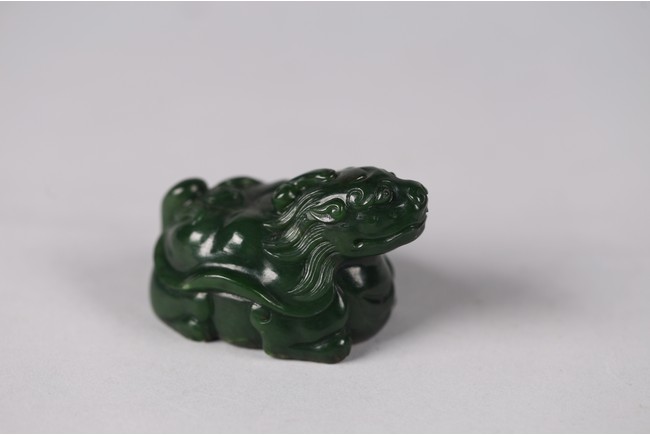 A CHINESE GREEN JADE 'BEAST' PAPERWEIGHT 民國 碧玉瑞獸紙鎮