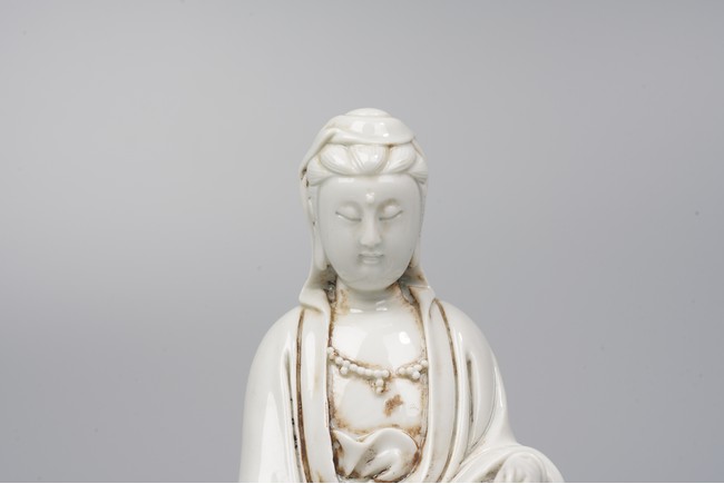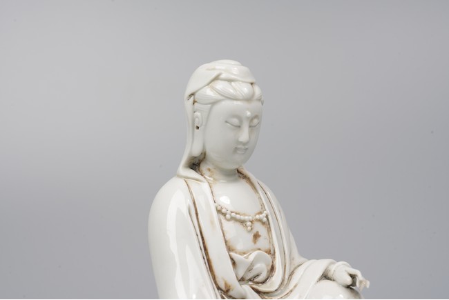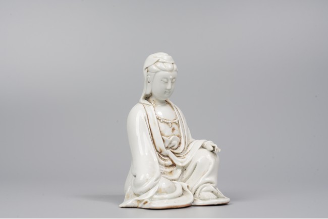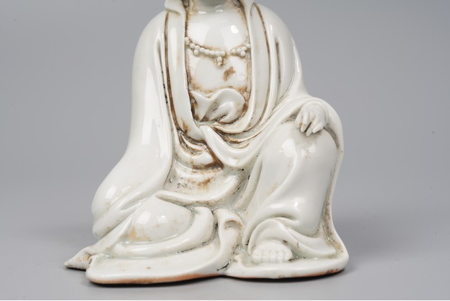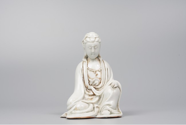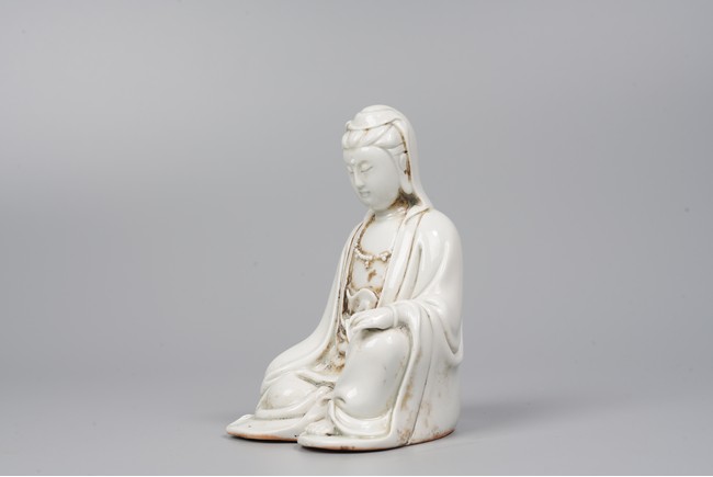 Chinese. Shown seated with left hand resting on her knee, wearing voluminous robes. Qing Dynasty period.