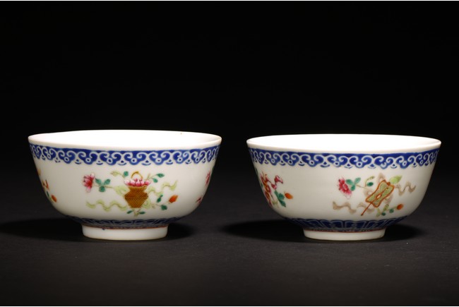 此器胎薄釉润,圆壁光泽,圈足托承。器身饰“如意云纹”“花卉纹”“莲瓣纹”,构图纹理 精妙,绘画传神,色泽浓淡相间,层次分明。“大清道光年制”款识,成对保存。
