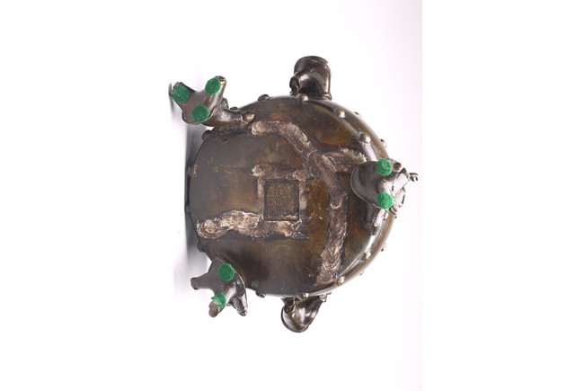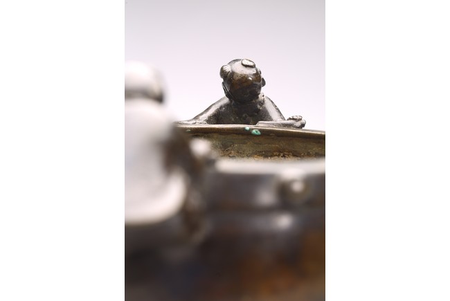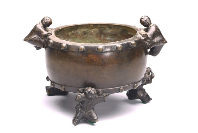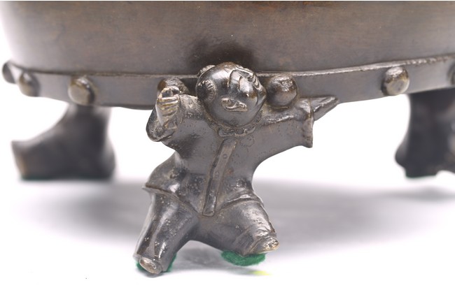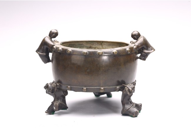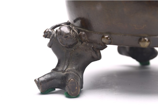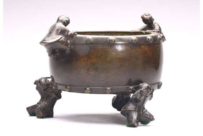 The censer supported on three 'boys' feet, with further two boys clambering on rim as handles. Qing Dynasty period.