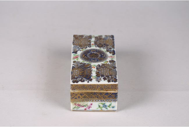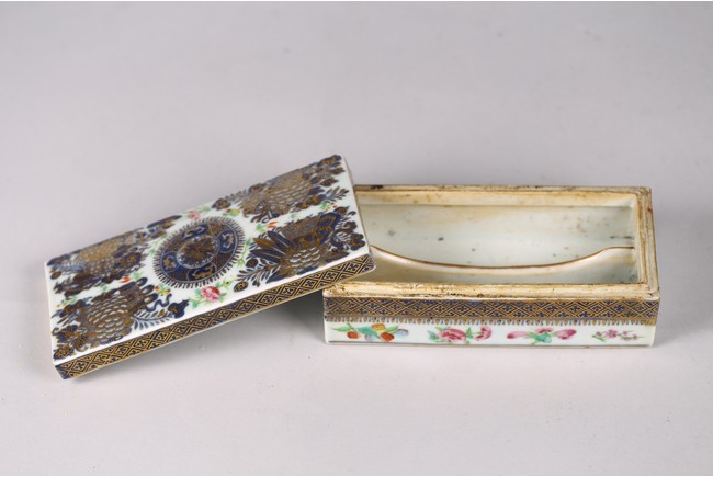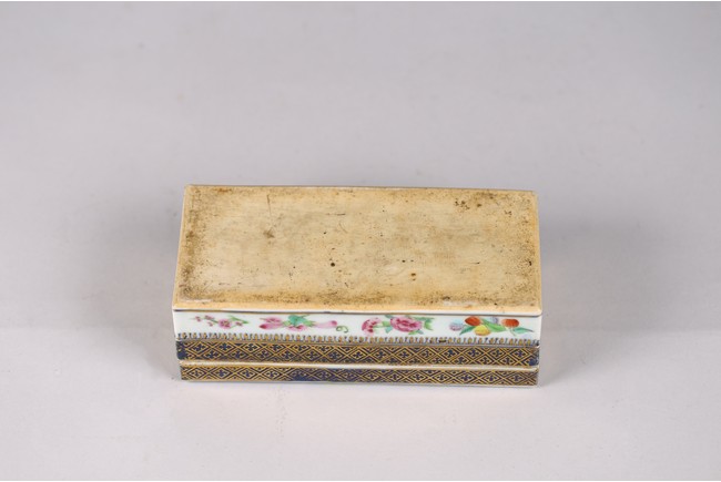 Gilt painted in famille rose with floral designs to the top and body, base unglazed. Qing Dynasty period.