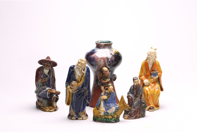 Comprising of five porcelain Figurines and two porcelain vases. Republic period.