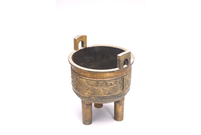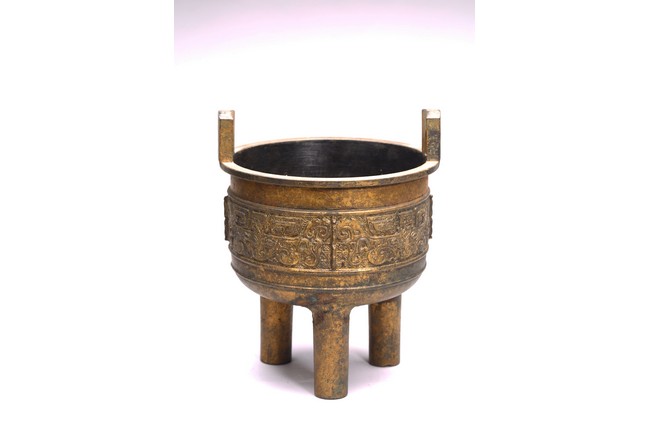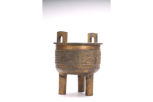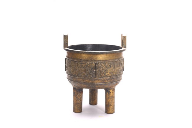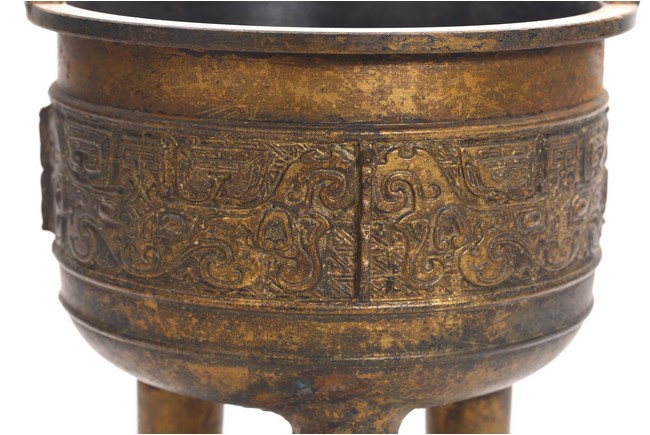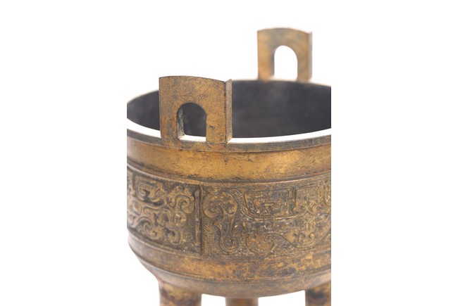 The bronze tripod censer body cast with band of archaistic pattern. Republic period.