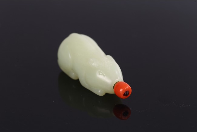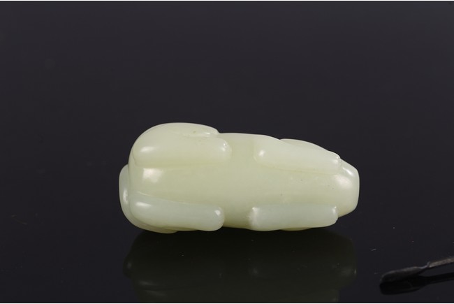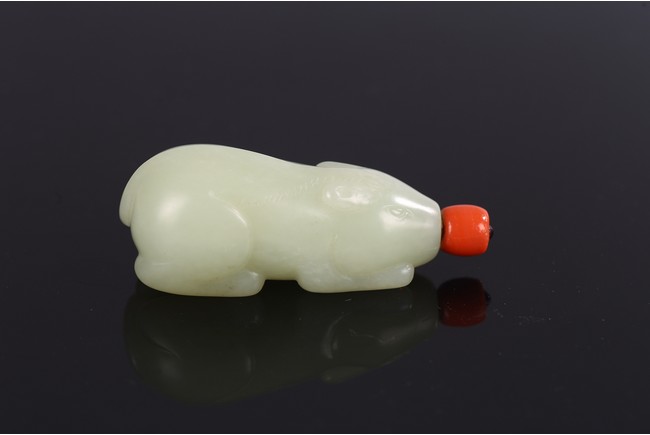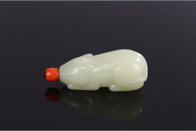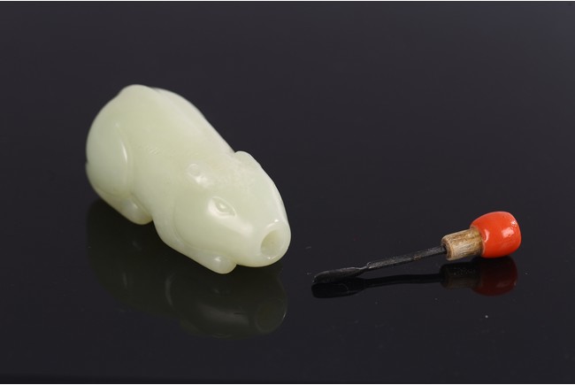 Carved in the form of a recumbent mouth, stone is of even white tone, with stopper.