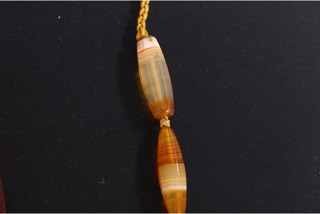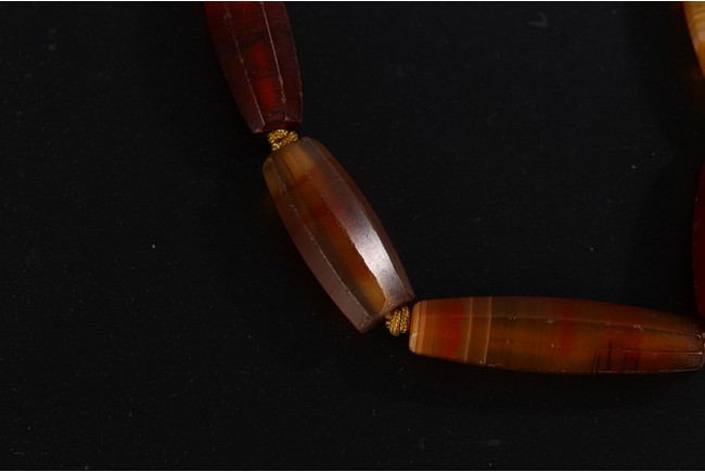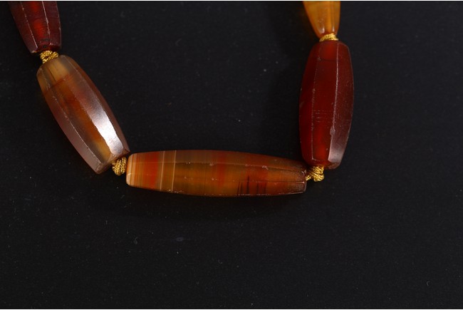 Composed of eight faceted barrel shape agate beads. Circa 3nd Century B.C.-2st Century B.C