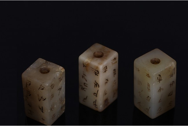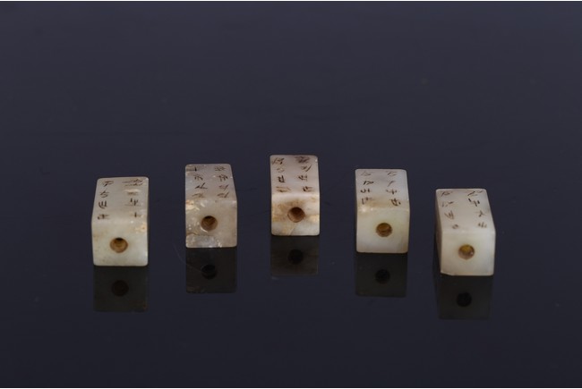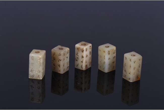 Comprising of five rectangular and vertically pierced ornaments, with inscriptions inscribed on all four sides.