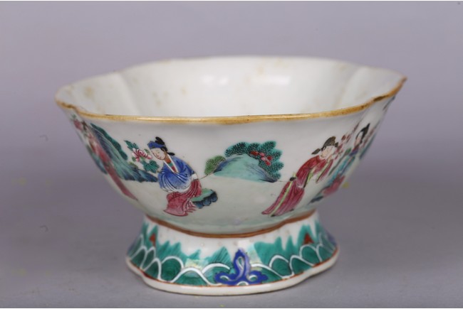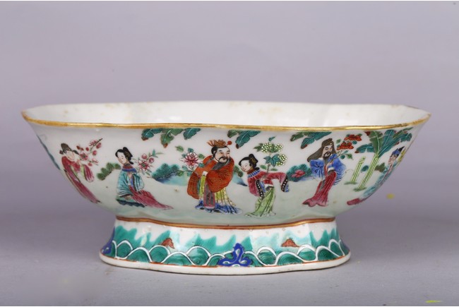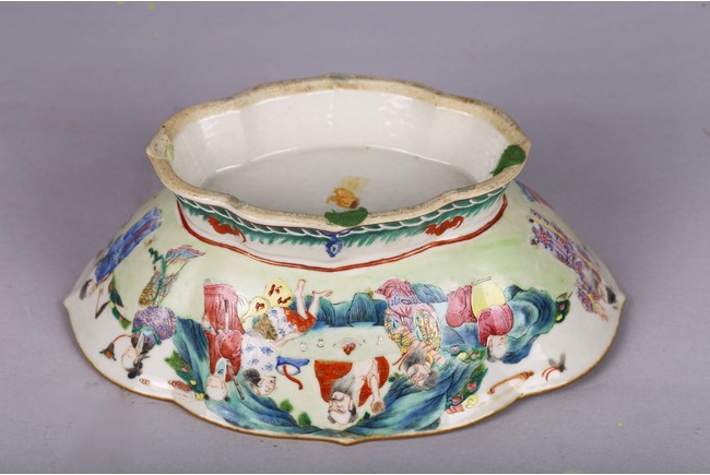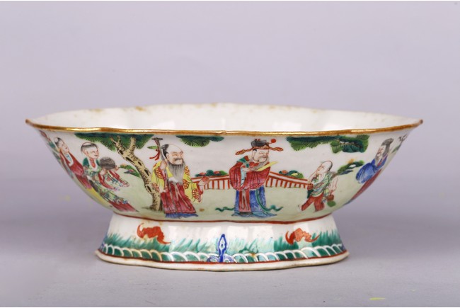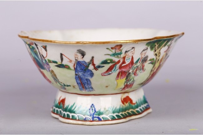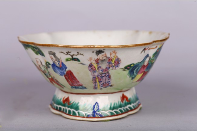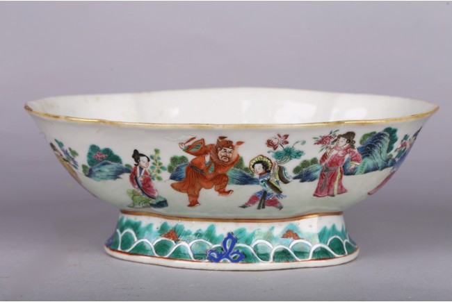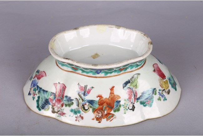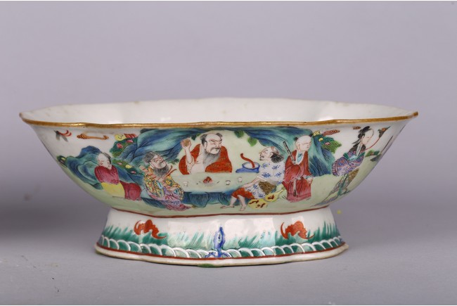Finely decorated in famille rose to depict the various immortal figures around the exterior. Qing Dynasty period.