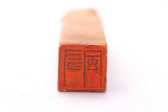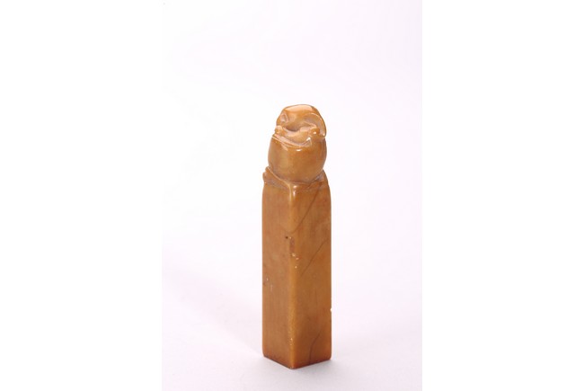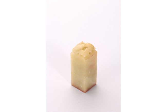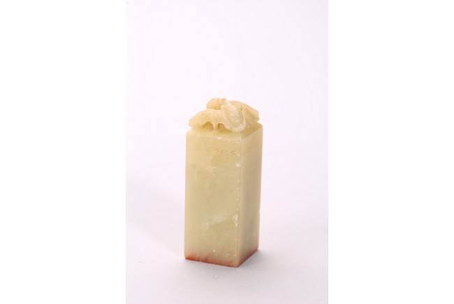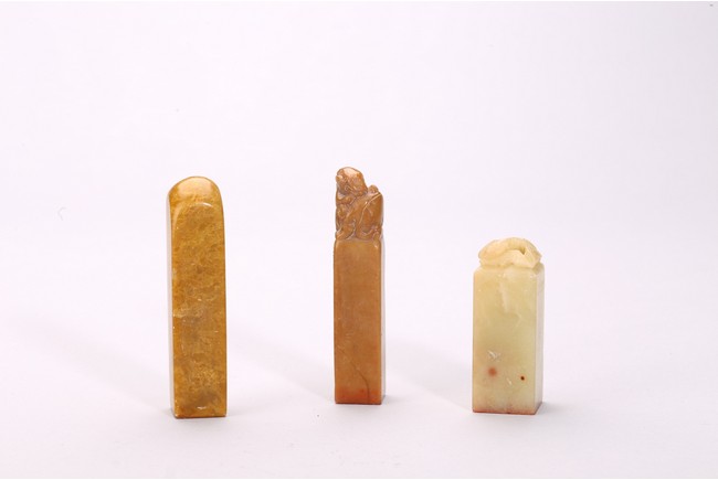 Comprising of three soapstone seals, one carved with a mythical beast on top. Qing Dynasty period.