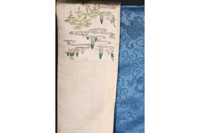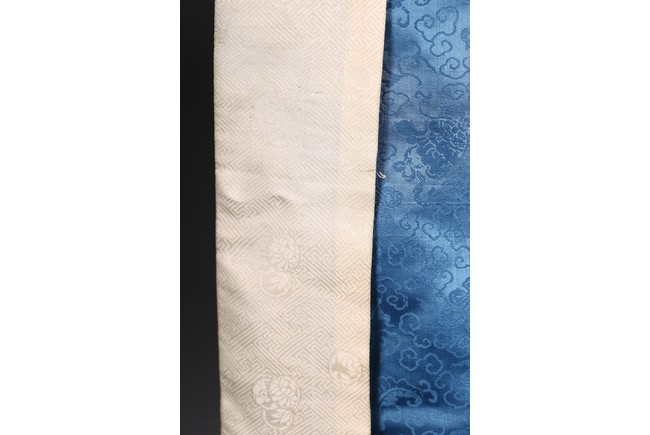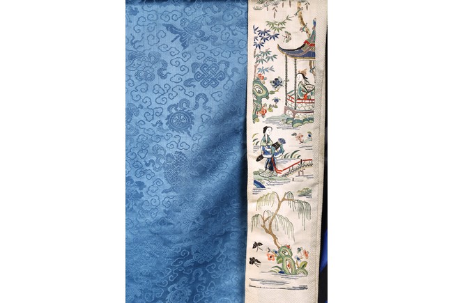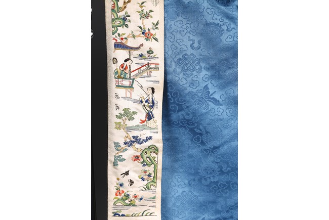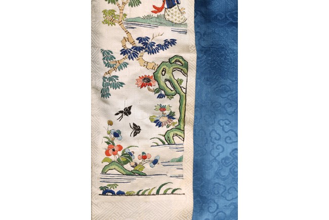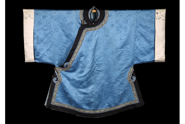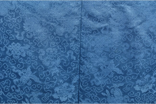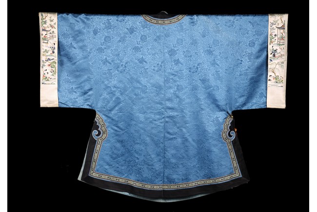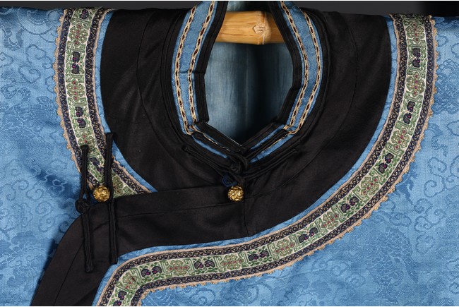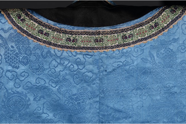 A Blue Silk Brocade Embroidered Ladies Robe. Qing Dynasty period.