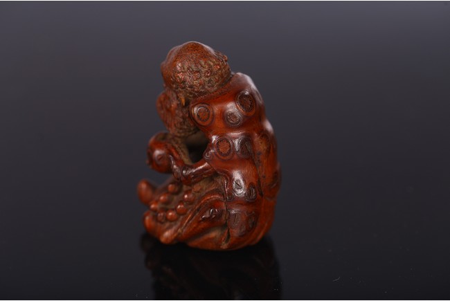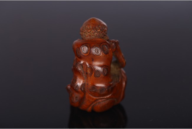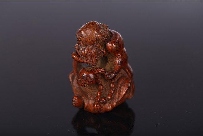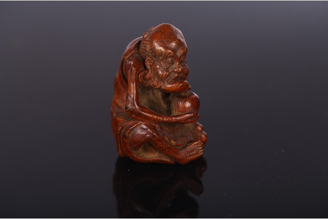 The ascetic figure depicted holding alms bowl on one hand and a bead necklace on the other, wearing a large robe revealing prominent ribs. Qing Dynasty period.
