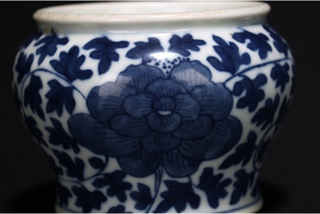 Chinese. Decorated with foliage design, base glazed in white. Qing Dynasty period.