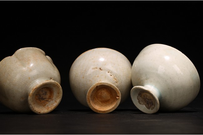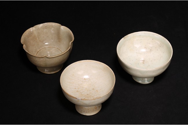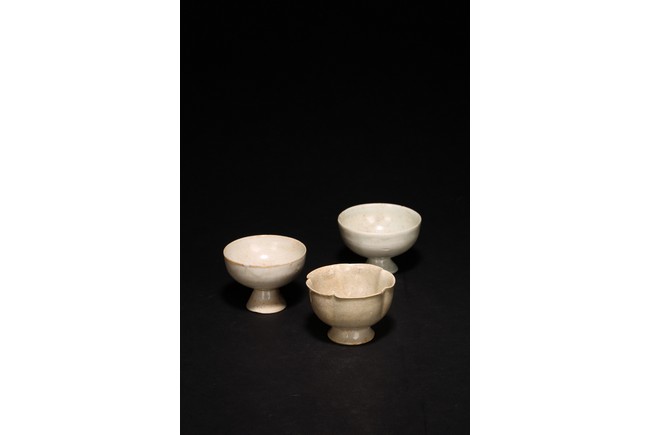 Chinese. Comprising of three white glazed cups, including one modelled with five notched lobes. Song Dynasty period.