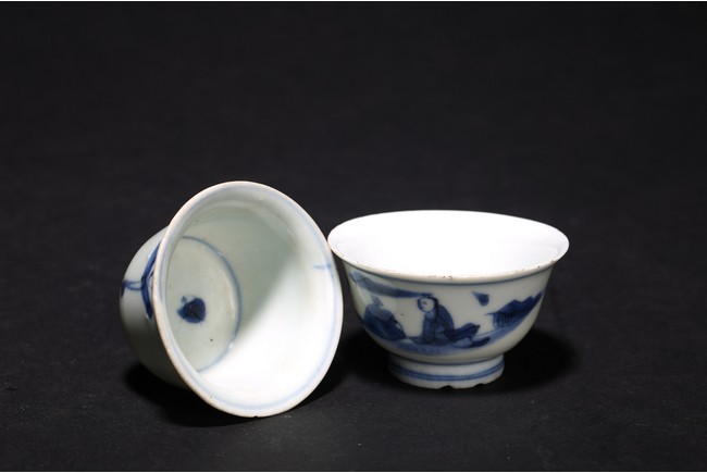 Chinese. Each freely painted figures around exterior. Qing Dynasty period.