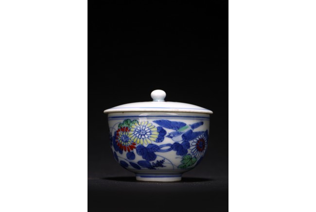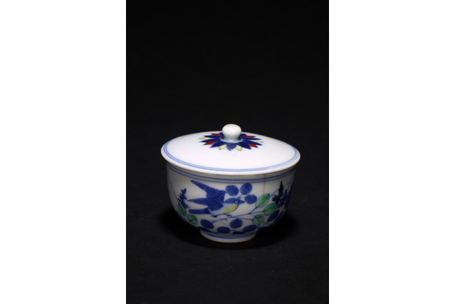 Chinese. The exterior painted with bird and flowers, with lid. Qing Dynasty period.
