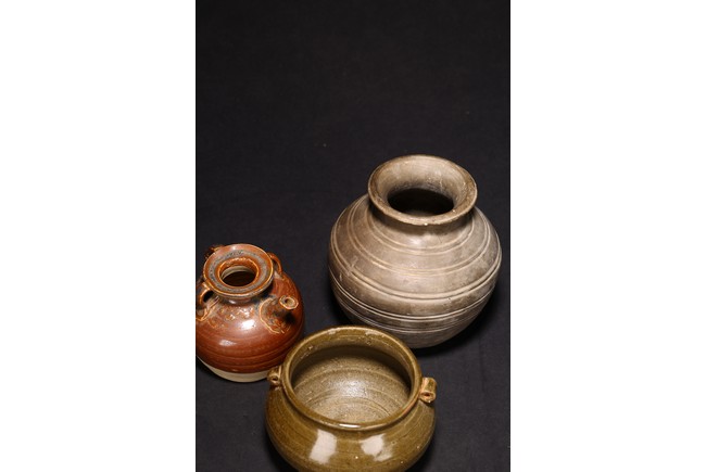 Chinese. Comprising of three glazed stoneware jars. Qing Dynasty or earlier.