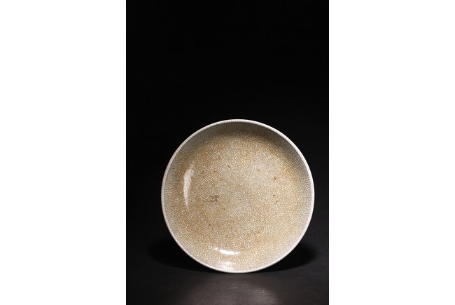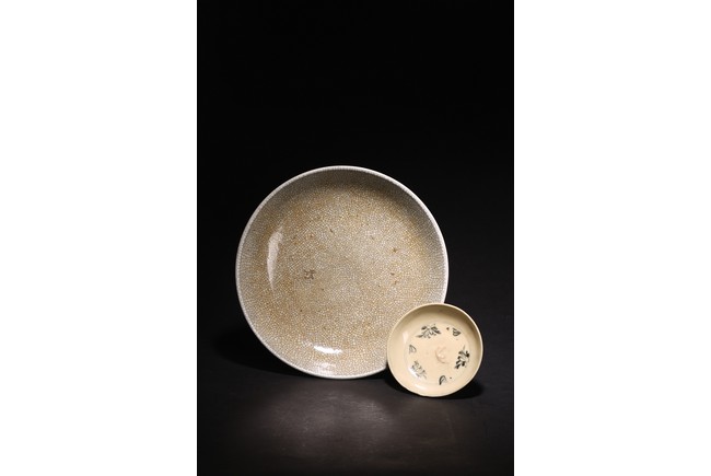 Chinese. Comprising of a white glaze Crackle dish and a small blue and white plate. Qing Dynasty period.