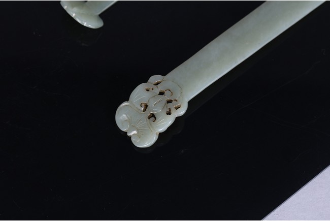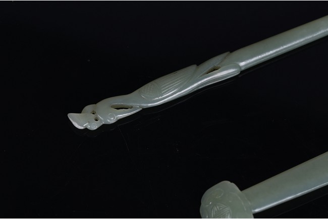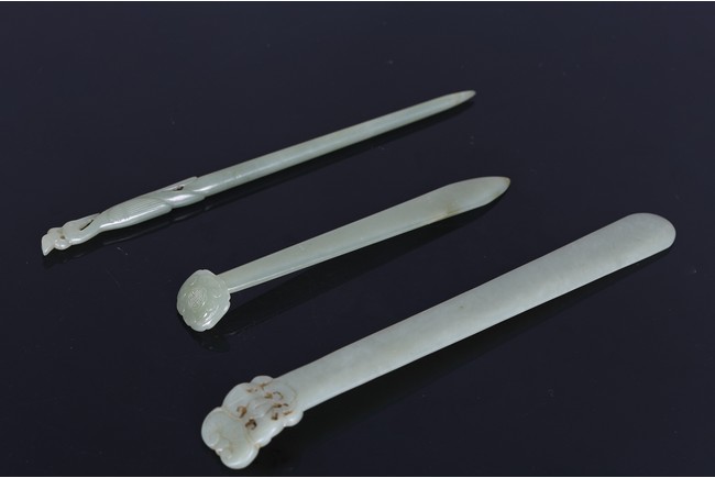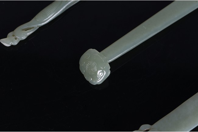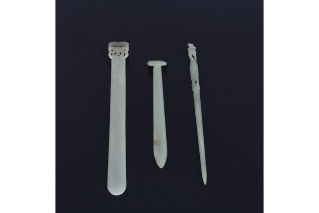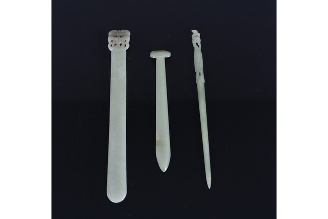 Comprising of three jade hairpins of different forms. Qing Dynasty period.