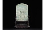 A CHINESE GREENISH WHITE JADE 'IMMORTALS' TABLE SCREEN