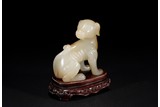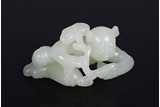A WHITE JADE CARVING OF LINGZHI HOLDING BOY