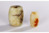 TWO JADE 'DRAGON' CYLINDER BEADS