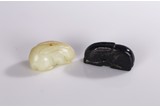 TWO CHINESE WHITE AND BLACK JADE RABBITS