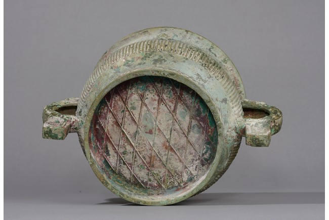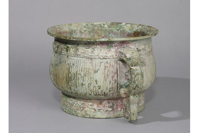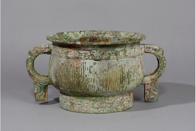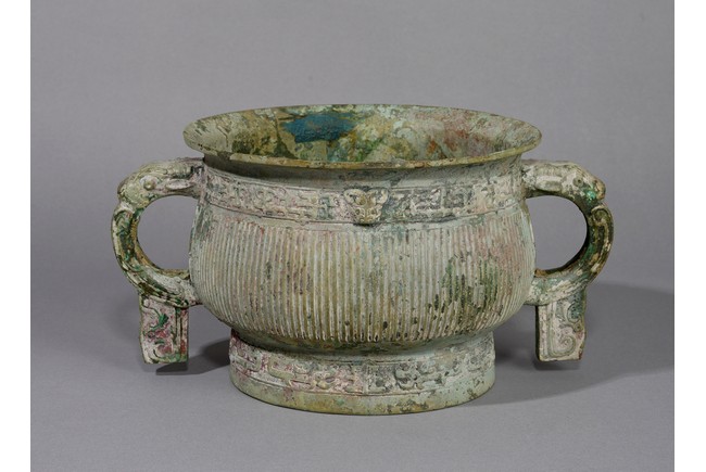 Provenance: Property from a private collection, Torrance. 來源: 洛杉磯托倫斯市私人收藏 可參考一尊相類似竪紋青銅簋,藏於日本奈良國立博物館, 編號(1317-171),以及一尊尺寸較大青銅簋(寬 49 cm), 藏於英國倫敦大英博物館, 編號1977,0404.1 Refer to a bronze gui with similar vertical line patterns, which in Collection of the Nara National Museum in Japan with the accession number 1317-171. Additionally, there is a larger bronze gui with a width of 16.5 in or 42 cm in the collection of British Museum (number 1977,0404.1).